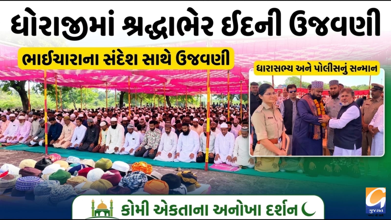 રાજકોટ જિલ્લાના ઐતિહાસિક શહેર ધોરાજીમાં આજે મુસ્લિમ બિરાદરો દ્વારા ઈદ-ઉલ-ફિત્રના પવિત્ર પર્વની પરંપરાગત આસ્થા અને અકીદત સાથે ઉજવણી કરવામાં આવી હતી. રમઝાન માસના ઉપવાસ પૂર્ણ