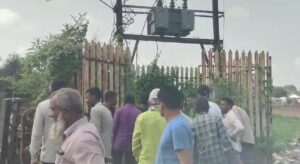 વીજ ટ્રાન્સફોર્મર ઉપર ચોંટી ગયેલા કપિરાજને સ્થાનિકોએ લાકડીથી દૂર કરી જીવ બચાવ્યો.