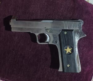 ભરુચ એ.ડિવિઝન પોલીસે વાહન ચોરીના ગુનામાં મૂળ કરજણ તાલુકાનાં માકણ ગામનો અને હાલ વાગરાની અસ્મા પાર્ક સોસાયટીમાં રહેતો જ્લાલૂદીન આવી સૈયદને ઝડપી પાડ્યો હતો પોલીસે તેની પાસે રહેલ મોબાઈલ ફોન તપાસ કરતાં મોબાઈલ ફોનમાં પિસ્તોલનો ફોટો દેખાતા પોલીસે તેની વધુપૂછપરછ કરતાં તે પિસ્તોલ પોતાની ફોર વ્હીલ ગાડીના ડેસ્ક બોર્ડની નીચે સંતાડી હોવાનું જણાવ્યુ હતું પોલીસે ગાડીમાં તપાસ કરતાં તેમાંથી દેશી બનાવટની પિસ્ટલ મળી આવી હતી.