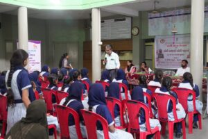 ભરૂચ જિલ્લા મહિલા અને બાળ અધિકારીશ્રીની કચેરી, જિલ્લા આરોગ્ય વિભાગના નેતૃત્વ હેઠળ નારી વંદન ઉત્સવ અંતર્ગત ‘બેટી બચાવો બેટી પઢાવો’ દિવસની ઉજવણી ‘ધ રોયલ સ્કુલ’ ભરૂચ ખાતે આયોજન કરાયું હતું. કાર્યક્ર્મની શરૂઆત કાર્યક્ર્મમાં મહાનુભાવો દ્વારા દીપ પ્રાગટ્ય કરી તેમજ પુષ્પ આપી સ્વાગત કરવામાં આવ્યું. ત્યારબાદ સ્કૂલના પ્રિન્સિપલ દ્વારા પ્રાસંગિક ઉદ્દ-બોધન કરવામાં આવ્યું હતું. દહેજ પ્રતિબંધક અધિકારીશ્રી પી.વી.વસાવા દ્વારા મહિલા કાયદા તેમજ મહિલા હેલ્પલાઇન વિષે વિસ્તૃત માહિતી આપવામાં આવી. જિલ્લા આરોગ્ય અધિકારીશ્રી ડો.જે.એસ.દુલેરા દ્વારા PC PNDT અધિનિયમ, લિંગ ભેદભાવ અને લિંગ પરીક્ષણ શું છે? વગેરે વિષેની વિસ્તૃત માહિતી આપવામાં આવી હતી. DHEW ટીમ દ્વારા હાઇજીન વિશેની સમજ તેમજ ગુડ ટચ બેડ ટચ વિશેની વિસ્તૃત માહિતી આપવામાં આવી હતી.