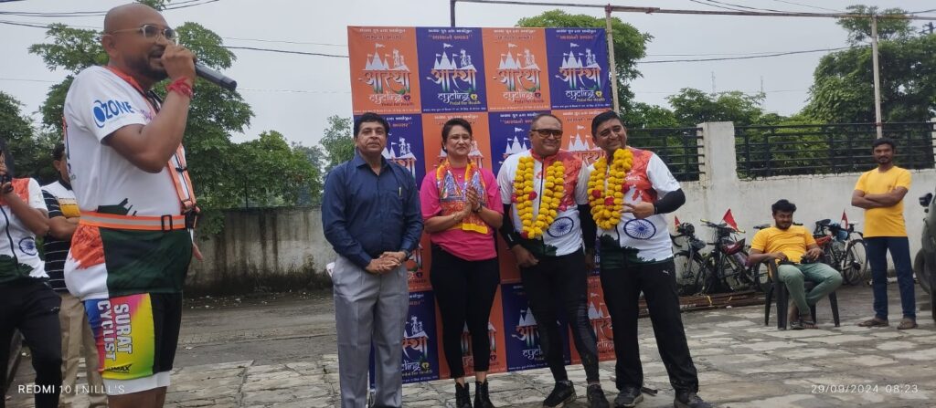 સુરતથી પેડલ ફોર હેલ્થનાં સંદેશ સાથે સિદસર ઉમિયા માતાજીના દર્શને નિકળેલા 60 સાયક્લિસ્ટો ભરૂચ જિલ્લામાં આવી પહોંચતાં ભરૂચ જિલ્લાના સાઈક્લિસ્ટ નિલેશ ચૌહાણ તથા શ્વેતા વ્યાસ દ્વારા સ્વાગત-સન્માન કરવામાં આવ્યું.