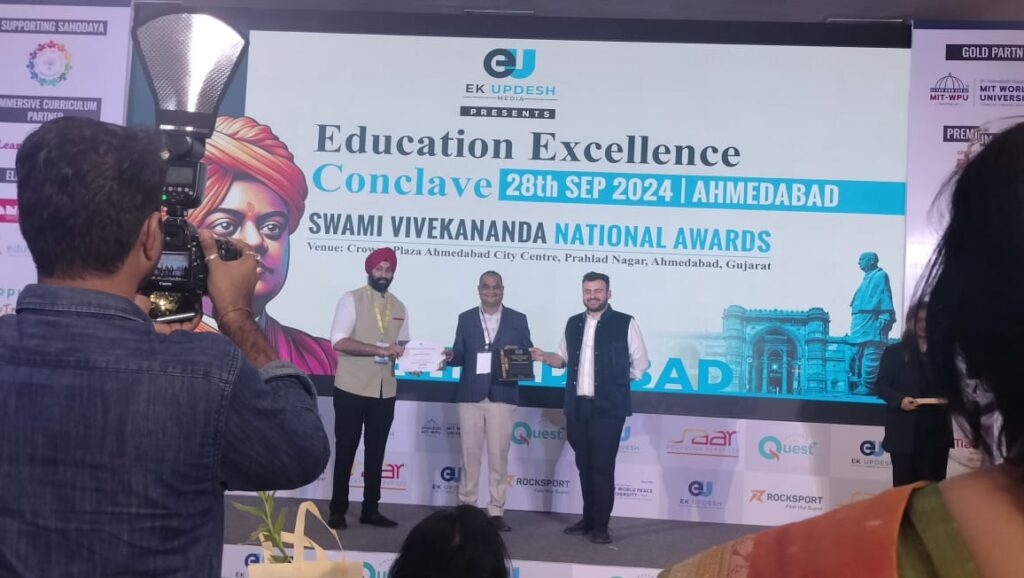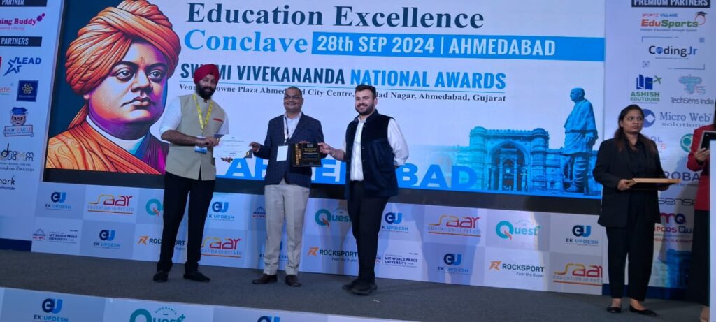 જેના પ્રતિસદમાં આચાર્યએ પોતાના અભિપ્રાય રજૂ કર્યા હતા. આચાર્ય દ્વારા રજુ કરાયેલા અભિપ્રાયને ધ્યાન રાખી કમિટીના સભ્યોએ અત્રેની શાળાના આચાર્ય શ્રી મનોજ કુમાર તિવારીને સ્વામી વિવેકાનંદ નેશનલ પ્રિન્સિપલ એવોર્ડ 2024 થી સન્માનિત કરી તેઓનું અભિવાદન કરવામાં આવ્યું હતુ.