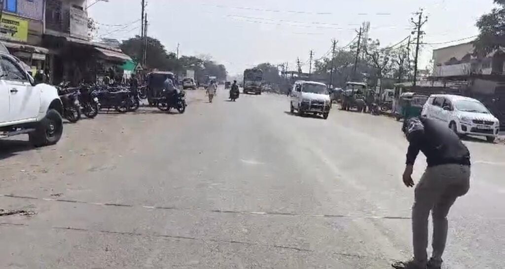 આમોદ: નેશનલ હાઇવે ઓથોરિટી દ્વારા ચોકડી ઉપરના દબાણો દૂર કરવાં નિયંત્રણ રેખા અંતર્ગત માર્કિંગ કરાયાં