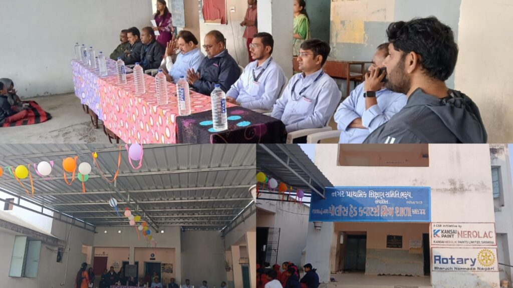 ભરૂચ શહેરમાં આવેલ પોલીસ હેડ ક્વાર્ટર્સ મિશ્ર શાળા ખાતે સાયખા ઇન્ડસ્ટ્રીયલ એસ્ટેટમાં આવેલ કંસાઇ નેરોલેક પેઇન્ટ્સ લિમિટેડ કંપની દ્વારા કોર્પોરેટ સોશિયલ રિસ્પોન્સિબિલિટી હેઠળ શાળાના નવા શેડનું નિર્માણ કરવામાં આવ્યું હતું. જેનું આજરોજ લોકાર્પણ કરવાના હેતુસર શાળા પટાંગણમાં કંપની સંચાલકોની હાજરીમાં કાર્યક્રમ આયોજિત કરવામાં આવ્યો હતો.