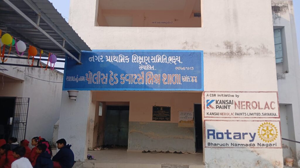 ભરૂચ શહેરમાં આવેલ પોલીસ હેડ ક્વાર્ટર્સ મિશ્ર શાળા ખાતે સાયખા ઇન્ડસ્ટ્રીયલ એસ્ટેટમાં આવેલ કંસાઇ નેરોલેક પેઇન્ટ્સ લિમિટેડ કંપની દ્વારા કોર્પોરેટ સોશિયલ રિસ્પોન્સિબિલિટી હેઠળ શાળાના નવા શેડનું નિર્માણ કરવામાં આવ્યું હતું. જેનું આજરોજ લોકાર્પણ કરવાના હેતુસર શાળા પટાંગણમાં કંપની સંચાલકોની હાજરીમાં કાર્યક્રમ આયોજિત કરવામાં આવ્યો હતો.