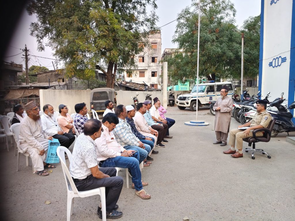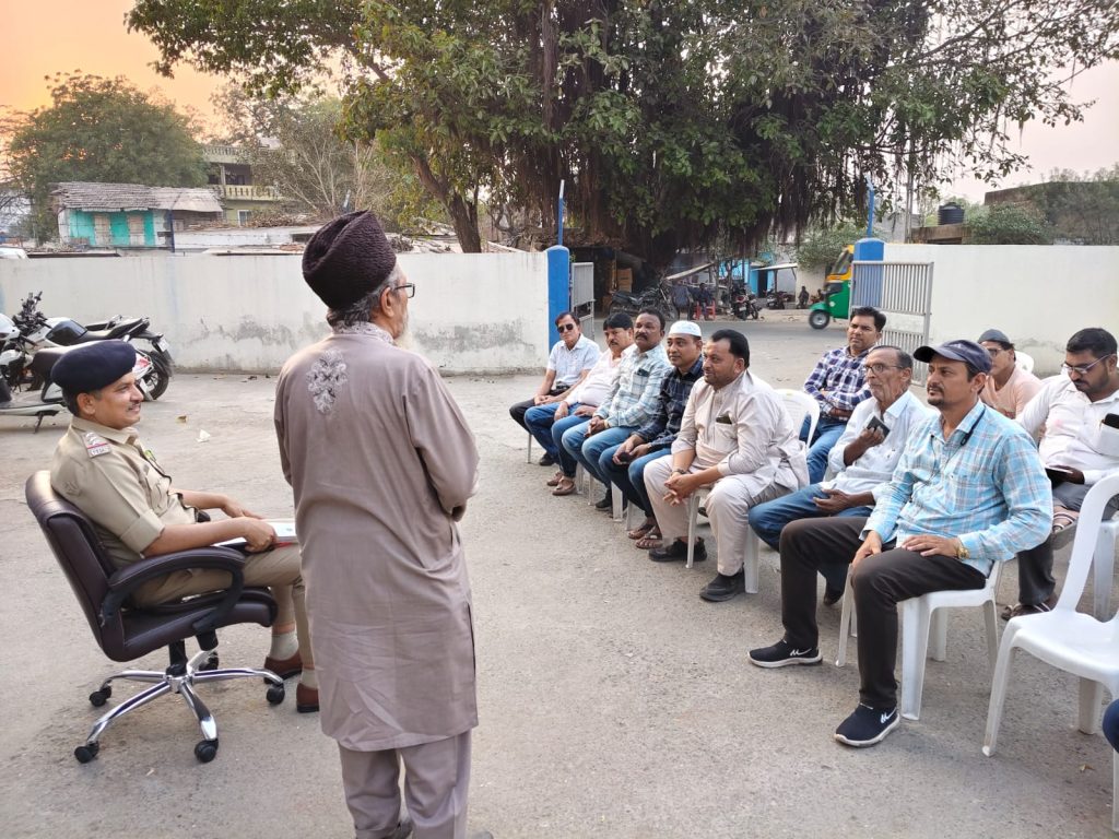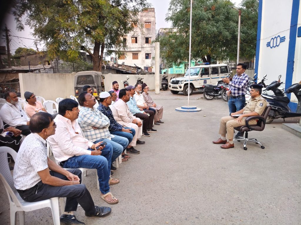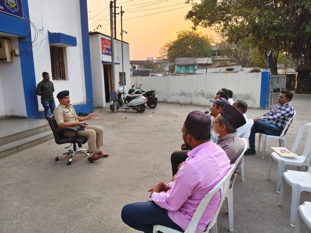 પોલીસ મથક હદ વિસ્તારના શાંતિ સમિતિના સભ્યો સહિત હિન્દૂ-મુસ્લિમ સમાજના આગેવાનો મિટિંગમાં હાજર રહ્યા હતા. તહેવારો દરમિયાન કાયદો અને વ્યવસ્થા જાળવવા પર ભાર મૂક્યો હતો. બધા તહેવારો કોમી એખલાસ સાથે ઉજવાય તે માટે વિશેષ આયોજન કરવામાં આવ્યું હતું. હાલમાં મુસ્લિમ સમુદાય રમઝાન માસની ઉજવણી કરી રહ્યો છે. આગામી દિવસોમાં હિન્દુ સમુદાય હોળી અને ધુળેટીની ઉજવણી કરશે. આ તમામ તહેવારો શાંતિપૂર્ણ વાતાવરણમાં ઉજવાય તે માટે સર્વ સમુદાયના આગેવાનોને અનુરોધ કરવામાં આવ્યો હતો.