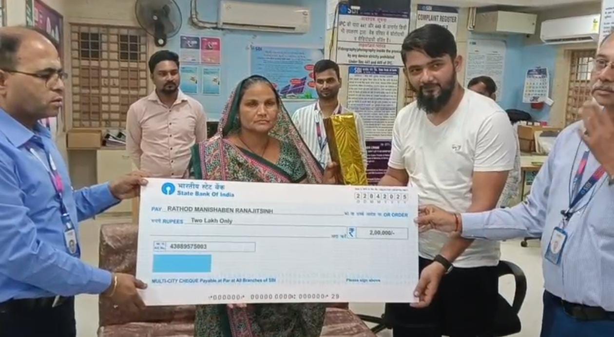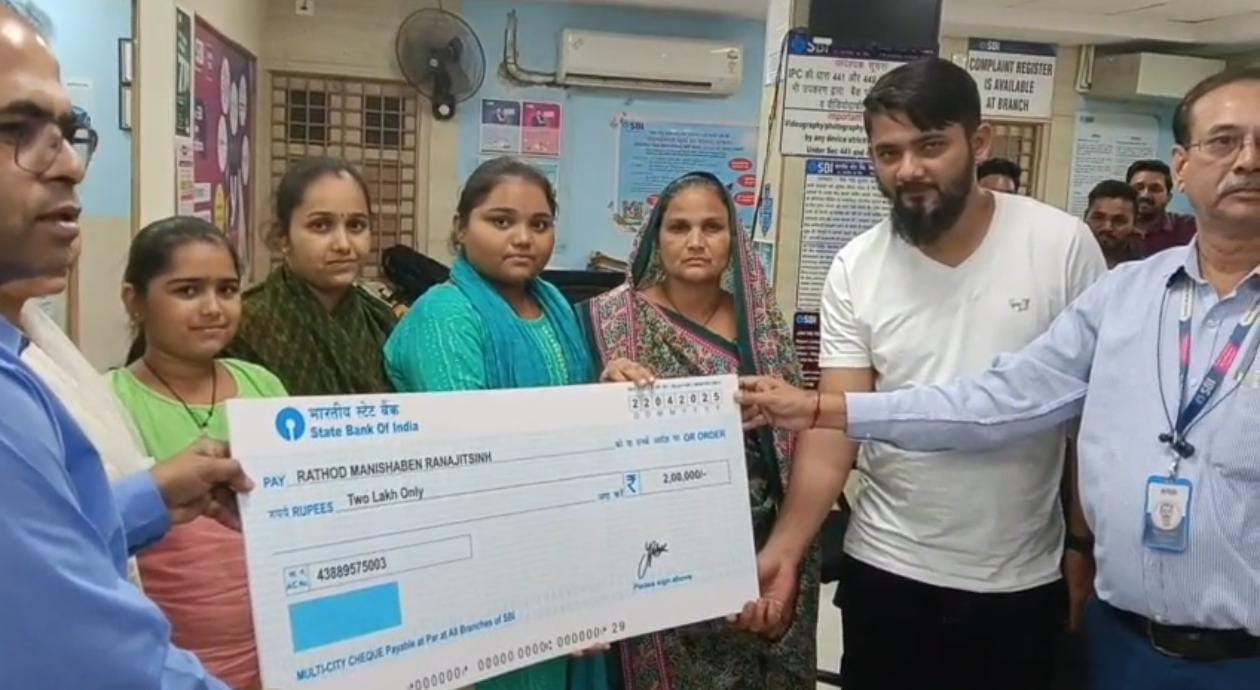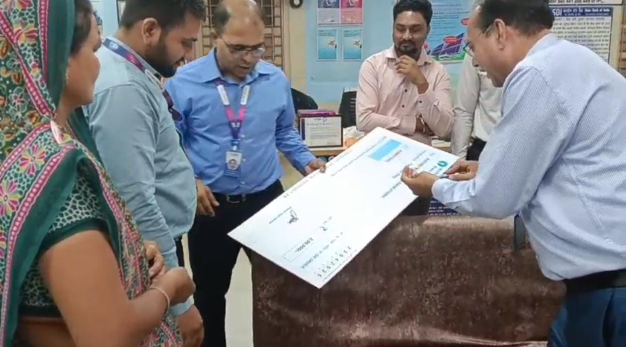 ભરૂચ જિલ્લાના વાગરા સ્થિત સ્ટેટ બેંક ઓફ ઇન્ડિયા શાખા દ્વારા પ્રધાનમંત્રી જીવન વીમા યોજના હેઠળ બેંકના ખાતેદારના પરિવારને બે લાખ રૂપિયાનો ચેક અર્પણ કરવામાં આવ્યો હતો. પ્રાપ્ત માહિતી અનુસાર રણજીતસિંહ ભૂપતસિંહ રાઠોડ કે જેઓ સ્ટેટ બેંક ઓફ ઇન્ડિયા શાખામાં તેઓએ એકાઉન્ટ ખોલાવ્યું હતું. સાથે-સાથે તેઓએ પ્રધાનમંત્રી જીવન વીમા યોજના હેઠળ વીમો પણ લીધો હતો. રણજીતસિંહનું ગત ફેબ્રુઆરી માસમાં અવસાન થયું હતું. તેઓએ બેંકમાં પ્રધાનમંત્રી જીવન વીમા યોજના હેઠળ વીમો લીધો હોઇ તેઓના પરિવારને બેંક દ્વારા બે લાખનો ચેક અર્પણ કરવામાં આવ્યો હતો. બેંક અધિકારીએ વધુમાં વધુ ખાતેદારોને પ્રધાનમંત્રી જીવન વીમા યોજનાનો લાભ લેવા અનુરોધ કર્યો હતો. 2 લાખનો ચેક અર્પણ થતા પરિવારજનોએ બેંકનો આભાર વ્યક્ત કર્યો હતો.