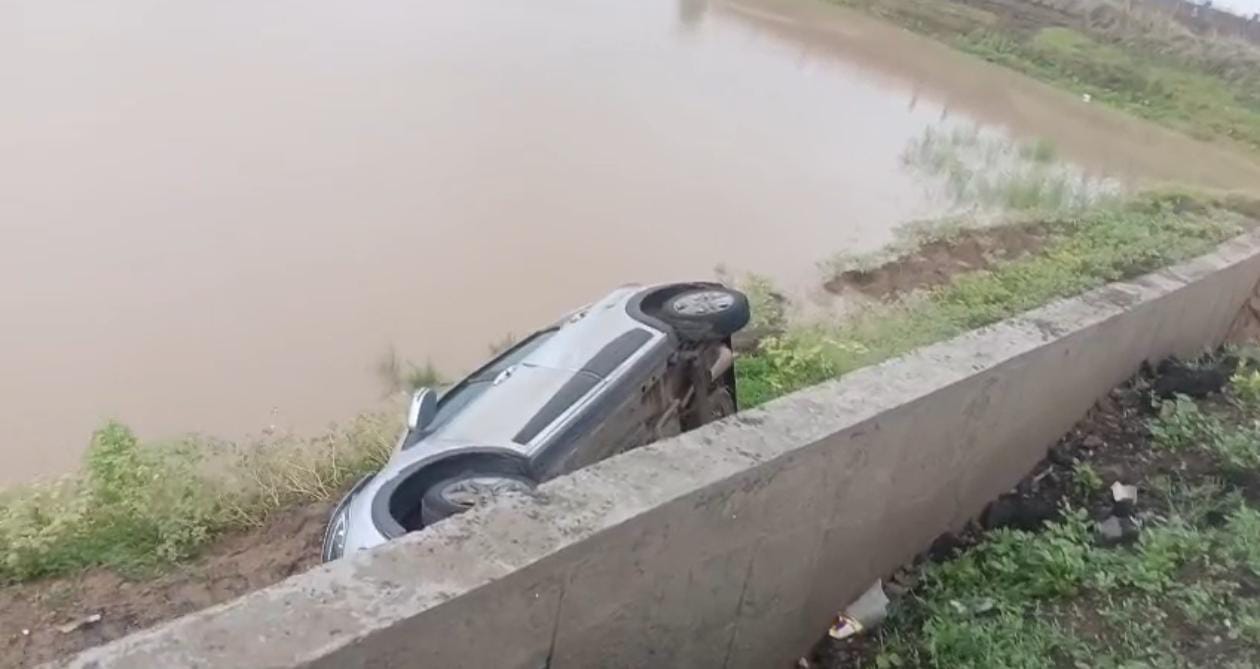 વાગરા: સારણ-સાયખા માર્ગ પર મોટી દુર્ઘટના થતા અટકી, કાર રોડની સાઈડમાં વોલ કૂદી તળાવમાં ખાબકી!!