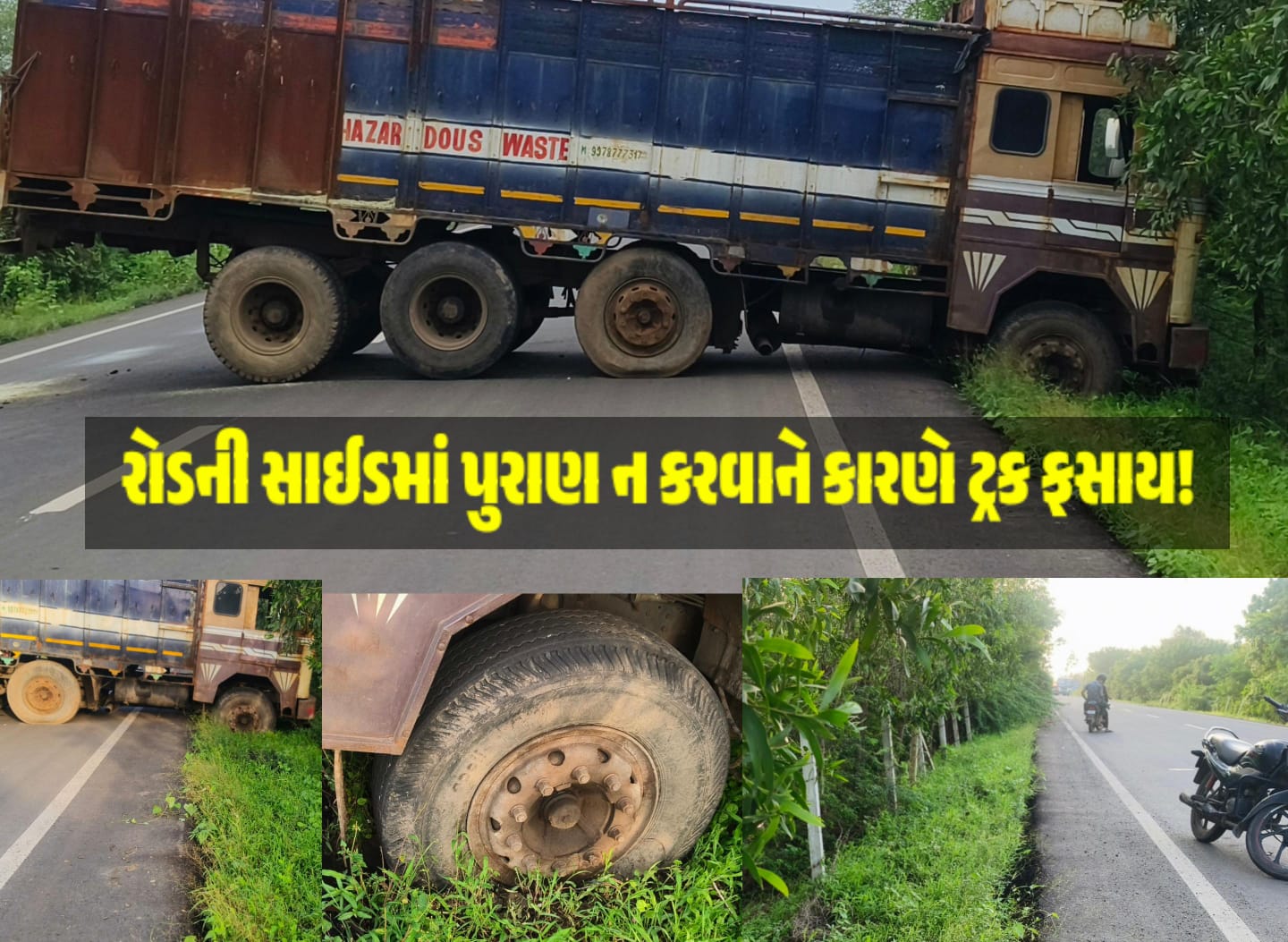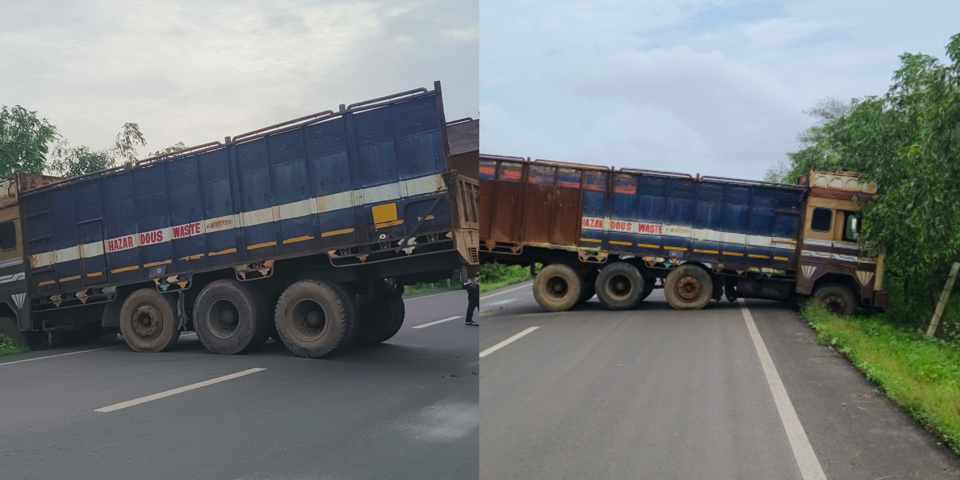હેઝાર્ડસ વેસ્ટની એક ટ્રક નંબર GJ-12-AU-9419 જે વાગરાથી ભરૂચ તરફ જઈ રહી હતી. તે દરમિયાન CISF કોલોની નજીક કોઈક કારણોસર ચાલક ટ્રક પરત વાગરા તરફ લઇ જવા માટે યુ-ટર્ન કરી રહ્યો હતો. તે વેળાએ ટ્રકના આગળના ટાયર રોડની નીચે ઉતરી જતા કિચડને કારણે ટાયર જામ થઈ જતા ટ્રક રોડ વચ્ચેજ આડી થઈ ગઈ હતી.