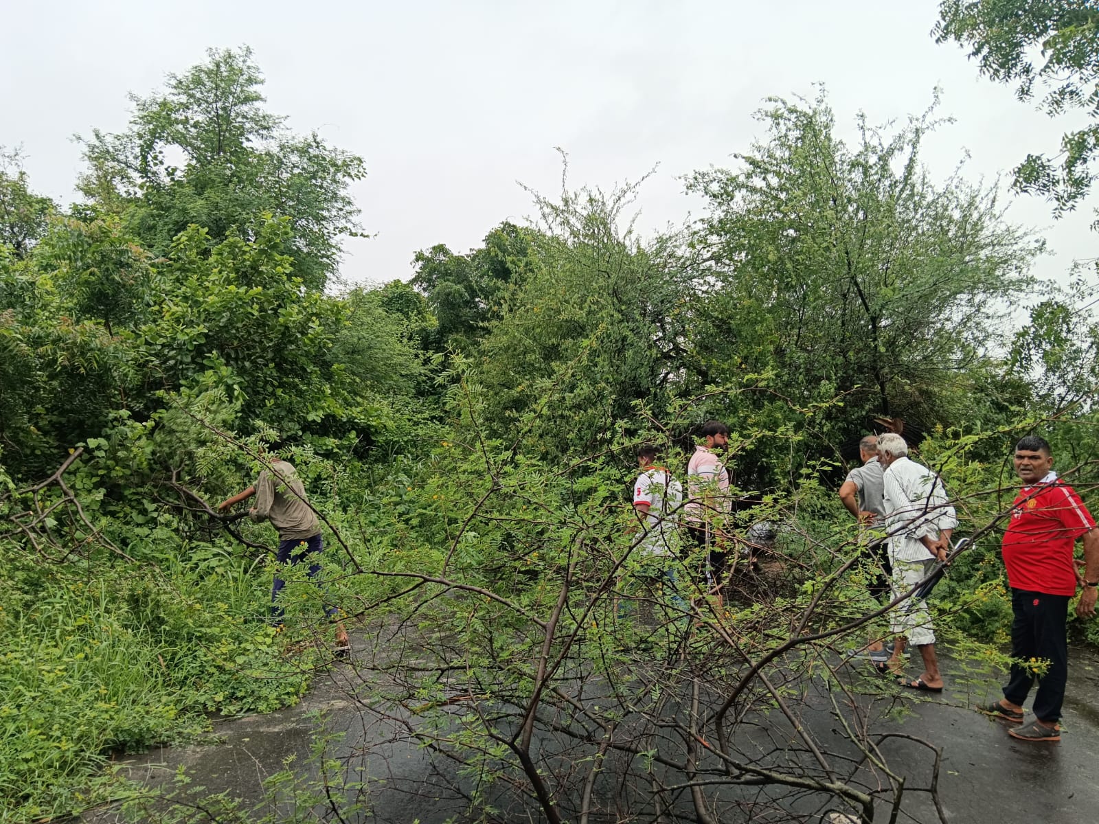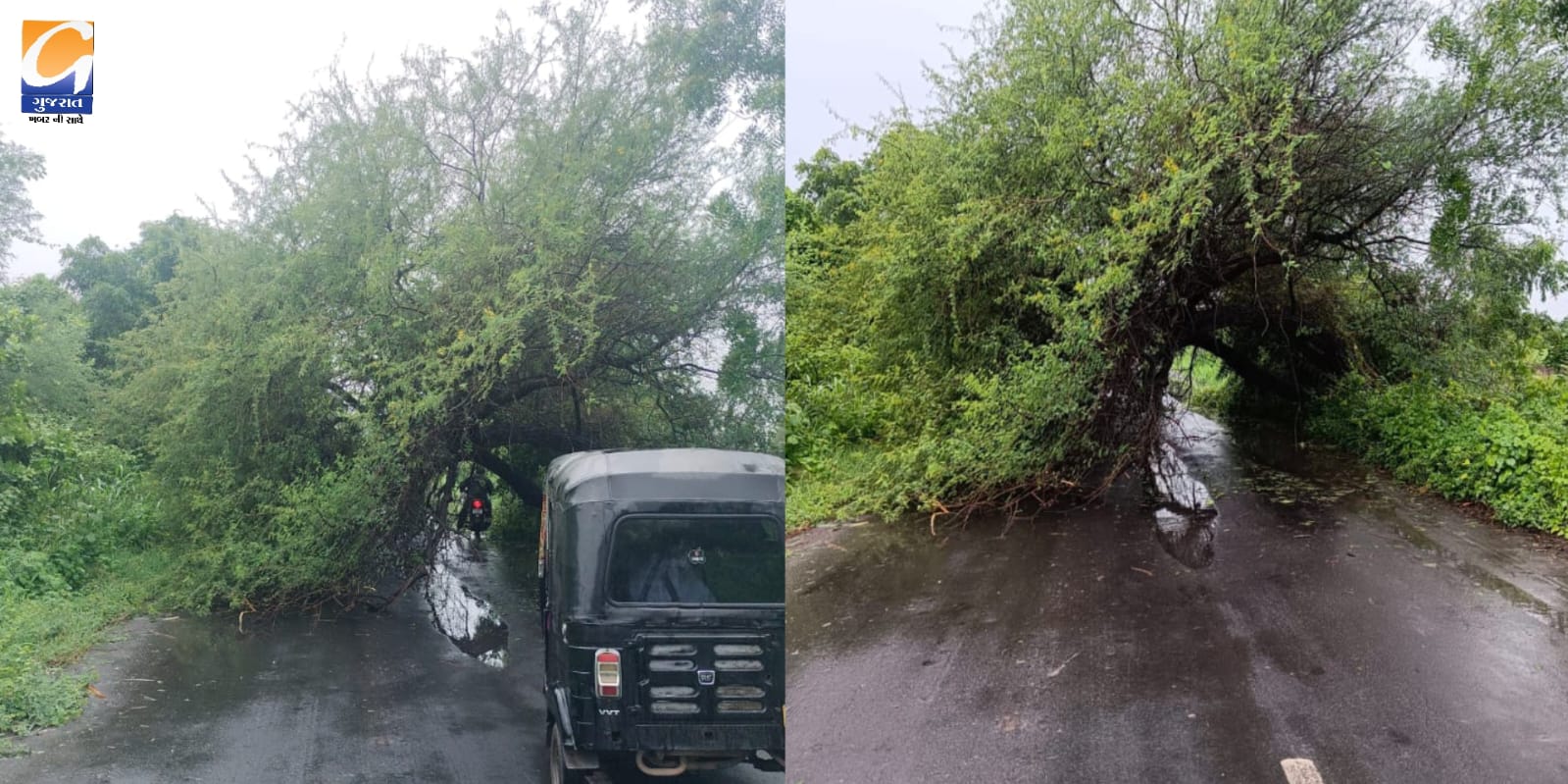 ભરૂચ-પાલેજ રાજ્ય ધોરીમાર્ગ પર આવેલા સીમલીયા-કંબોલી વચ્ચેના માર્ગ પર વરસાદના કારણે એક બાવળનું વૃક્ષ ધરાશાયી થતાં વાહનવ્યવહાર ખોરવાઈ ગયો હતો. જોકે, કંબોલીના યુવા સરપંચ હનીફ માંજરા અને ગામના જાગૃત યુવાનોએ તાત્કાલિક ધોરણે કામગીરી હાથ ધરી વૃક્ષને માર્ગ પરથી દૂર કરી ટ્રાફિકને પૂર્વવત કરાવ્યો હતો. તેમની આ સમયસૂચકતા અને સેવાભાવી કાર્યને લોકો દ્વારા વ્યાપક પ્રશંસા મળી રહી છે. પ્રાપ્ત માહિતી અનુસાર વરસાદના કારણે સીમલીયા અને કંબોલી વચ્ચેના માર્ગ પર એક મોટું બાવળનું વૃક્ષ અચાનક ધરાશાયી થઈ ગયું હતું. વૃક્ષ માર્ગની વચ્ચે પડતાની સાથે જ બંને તરફ વાહનોની લાંબી કતારો લાગી ગઈ હતી અને ટ્રાફિક સંપૂર્ણપણે થંભી ગયો હતો. સવારના સમયે કામકાજ અર્થે નીકળેલા લોકો અને અન્ય વાહનચાલકો અટવાઈ પડ્યા હતા.