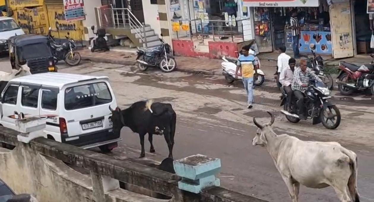 ઢોરના આતંકથી નાગરિકો પરેશાન, પાલિકા તંત્ર મૌન, જવાબદારીમાંથી કોણ છટકી રહ્યું છે? : આમોદ નગરમાં રખડતા ઢોરોનો ત્રાસ ભયજનક રીતે વધી રહ્યો છે. મુખ્ય માર્ગો અને બજારોમાં ઢોરના અડીંગાને કારણે નાગરિકોને ભારે હાલાકીનો સામનો કરવો પડી રહ્યો છે. આ પરિસ્થિતિ વચ્ચે, આમોદ પાલિકાએ લાખો રૂપિયાના ખર્ચે તૈયાર કરેલો ઢોર ડબ્બો માત્ર શોભાના ગાંઠિયા સમાન બની રહ્યો છે. આ ઢોર ડબ્બામાં અત્યાર સુધી એક પણ ઢોર પકડાયું નથી, છતાં તેના રીપેરીંગ પાછળ ચાર લાખથી વધુનો ખર્ચ કરવામાં આવ્યો છે. આ ખર્ચ પર અનેક સવાલો ઉભા થયા છે.