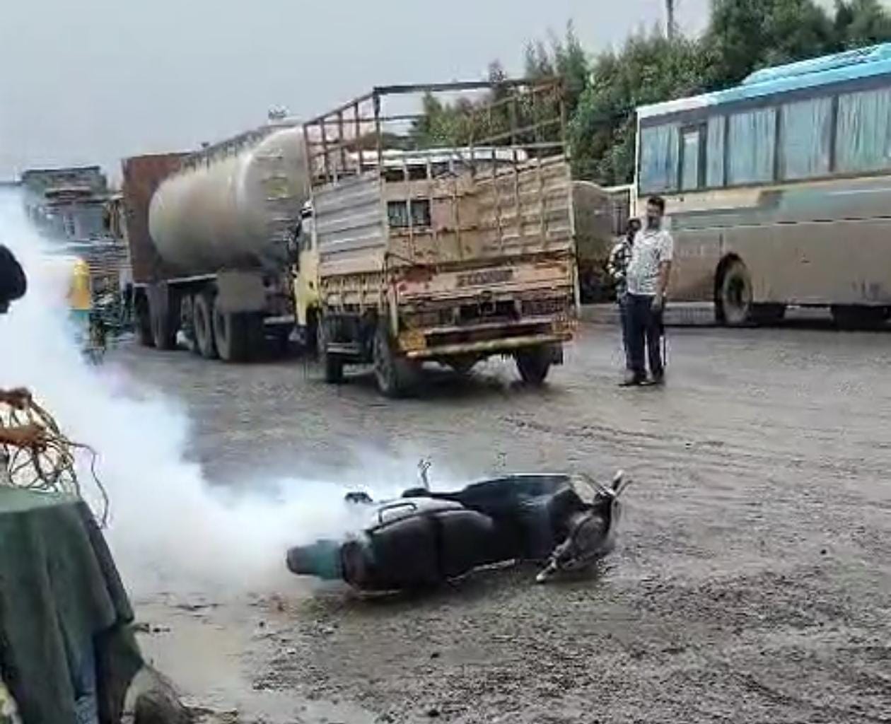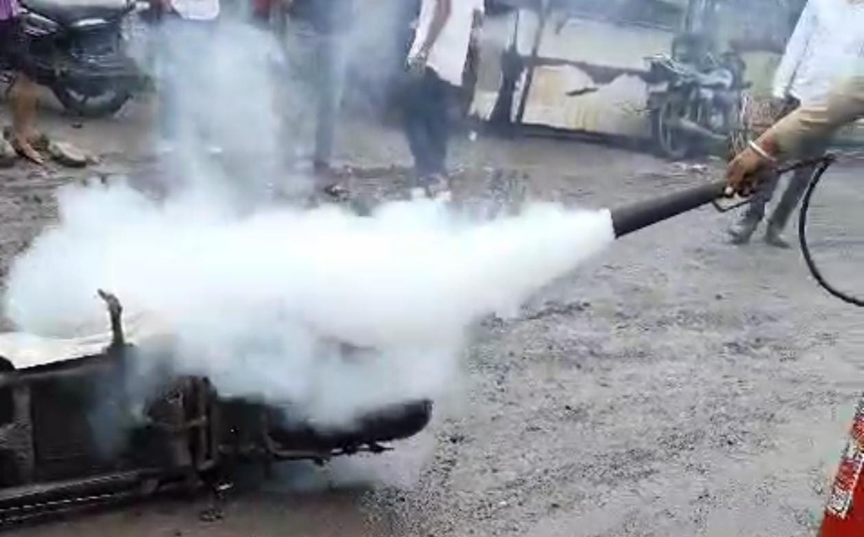 આ દ્રશ્ય જોઈને ત્યાં હાજર લોકો ડરી ગયા હતા. પરંતુ નજીકમાં આવેલી કંપનીના એક સિક્યુરિટી ગાર્ડે સમયસૂચકતા વાપરી અને તાત્કાલિક પગલાં લીધાં હતા. ગાર્ડે કોઈપણ જાતનો સમય વેડફ્યા વગર અગ્નિશમન યંત્ર વડે આગ પર કાબૂ મેળવવાનો પ્રયાસ કર્યો હતો. તેમની સતર્કતા અને સમયસરની કામગીરીને કારણે આગ વધુ ફેલાઈ ન હતી.