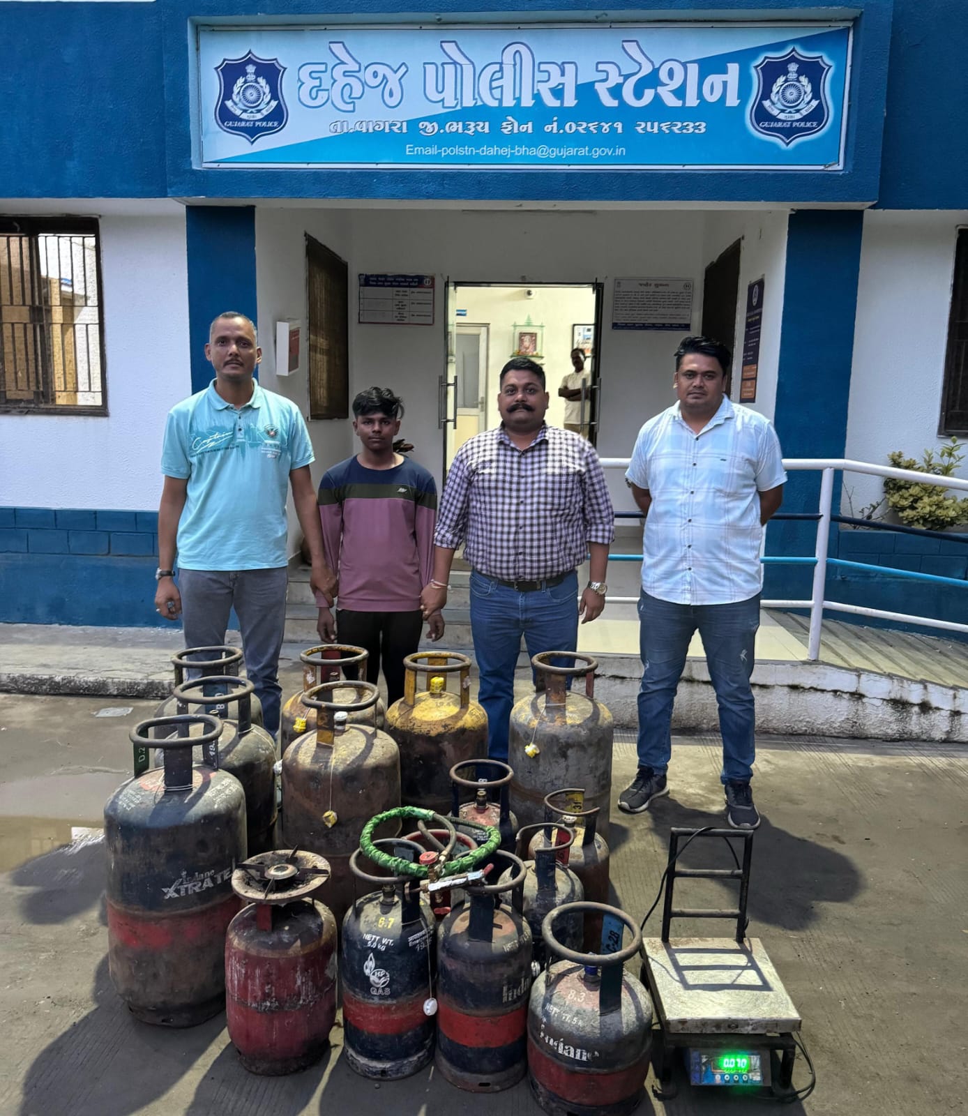 ભરૂચ જિલ્લાના પોલીસ અધિક્ષક અક્ષયરાજ મકવાણાની સૂચના હેઠળ, સ્પેશિયલ ઓપરેશન્સ ગ્રુપ (SOG)ની ટીમે દહેજ વિસ્તારમાં ચાલી રહેલા ગેરકાયદેસર ગેસ બોટલ રીફીલિંગના મોટા રેકેટનો પર્દાફાશ કર્યો છે. પોલીસે બે અલગ-અલગ સ્થળોએ દરોડા પાડીને કુલ ૪૦,૨૦૦ નો મુદ્દામાલ જપ્ત કર્યો છે. અને બે આરોપીઓને ઝડપી પાડ્યા છે. આ ગેરકાયદેસર પ્રવૃત્તિઓથી સામાન્ય નાગરિકોના જીવ જોખમમાં મુકાઈ રહ્યા હતા. SOGના પોલીસ ઇન્સ્પેક્ટર એ.એ. ચૌધરી અને એ.એચ. છેયાની ટીમ દહેજ વિસ્તારમાં પેટ્રોલિંગ કરી રહી હતી. તે દરમિયાન તેમને ગુપ્ત બાતમી મળી હતી કે વડદલા અને જોલવા ગામમાં કેટલીક દુકાનોમાં ગેરકાયદેસર રીતે ગેસનું રીફીલિંગ કરવામાં આવે છે. આ બાતમીના આધારે પોલીસે ત્વરિત કાર્યવાહી હાથ ધરી હતી.
