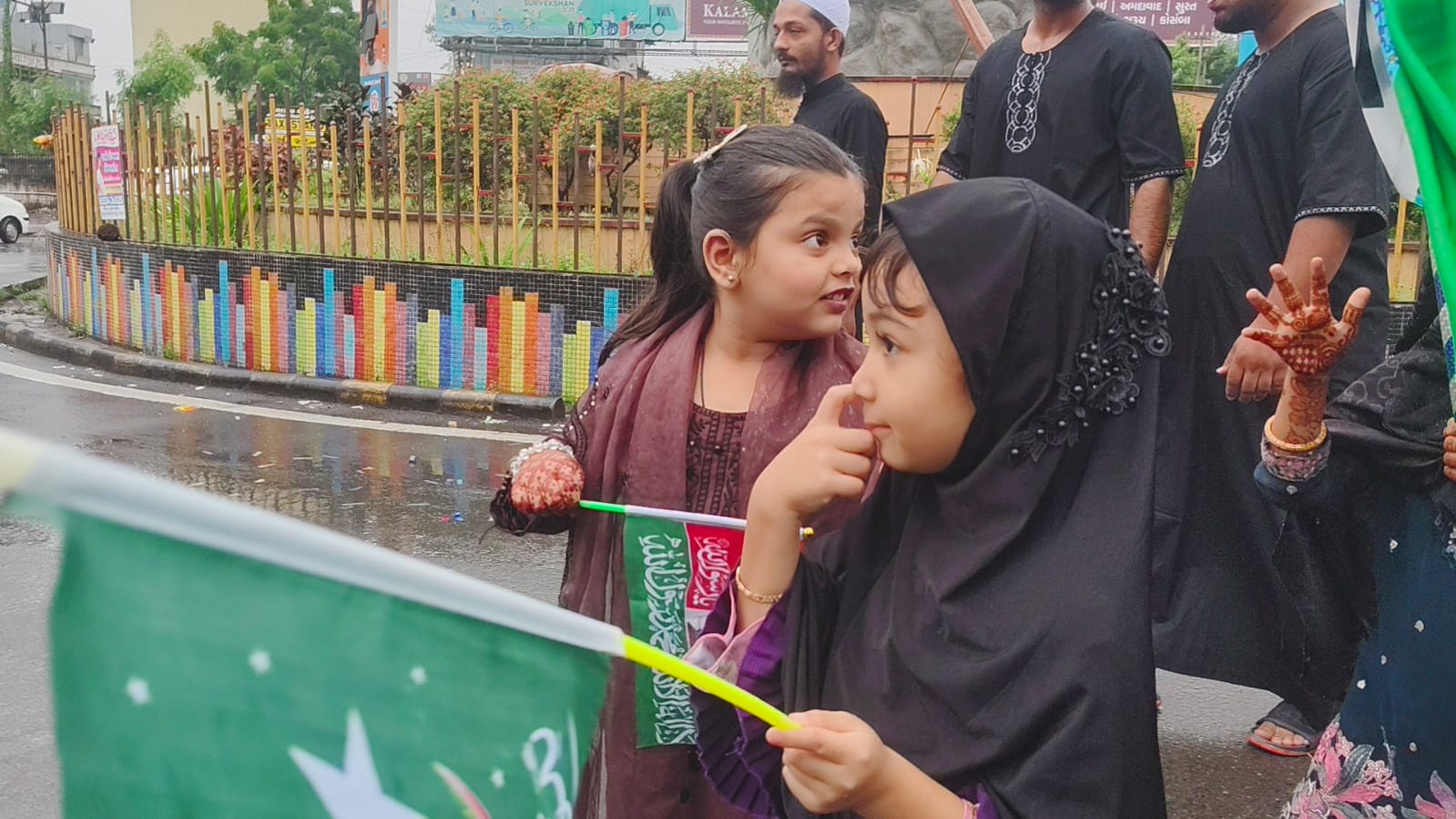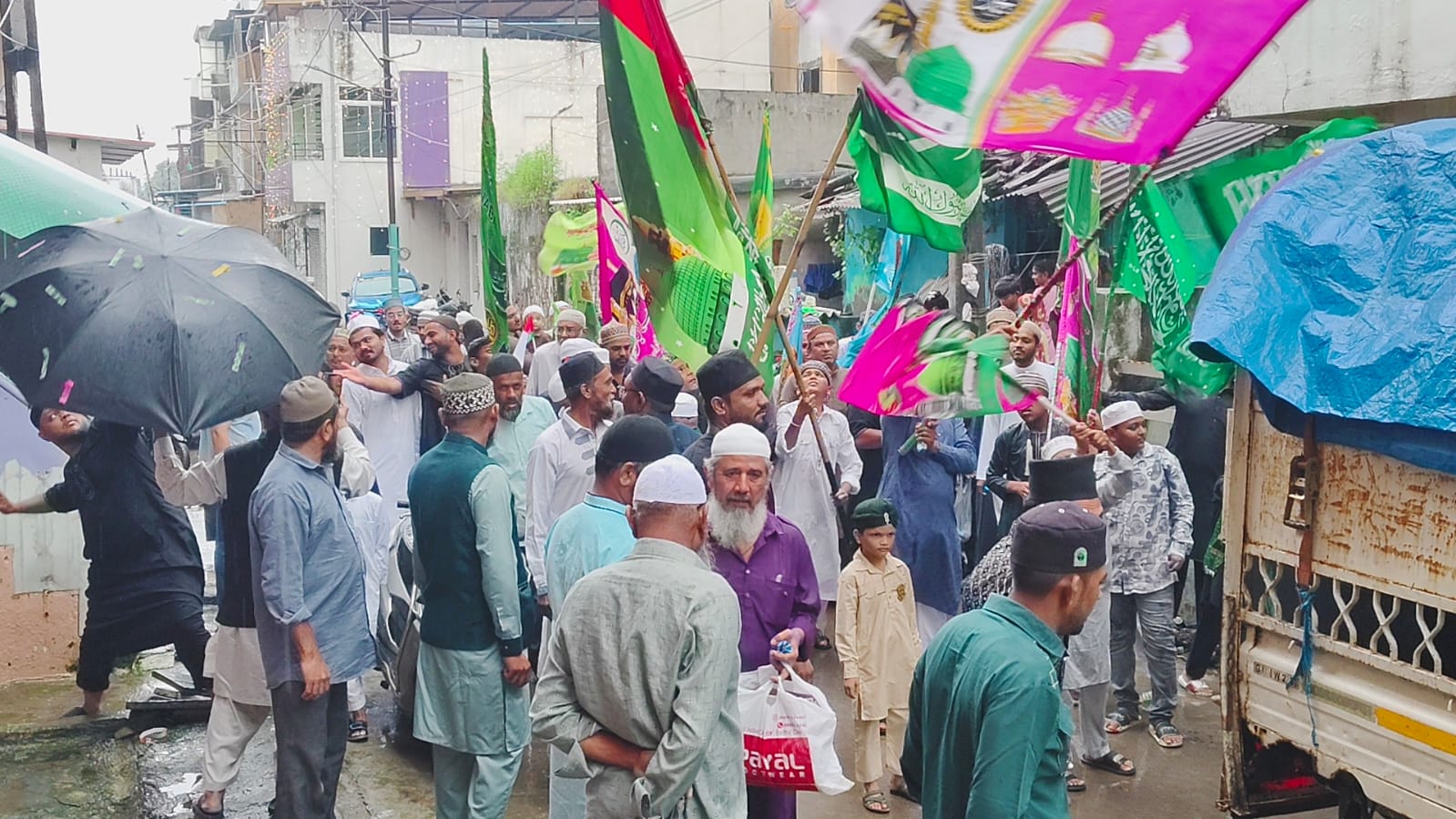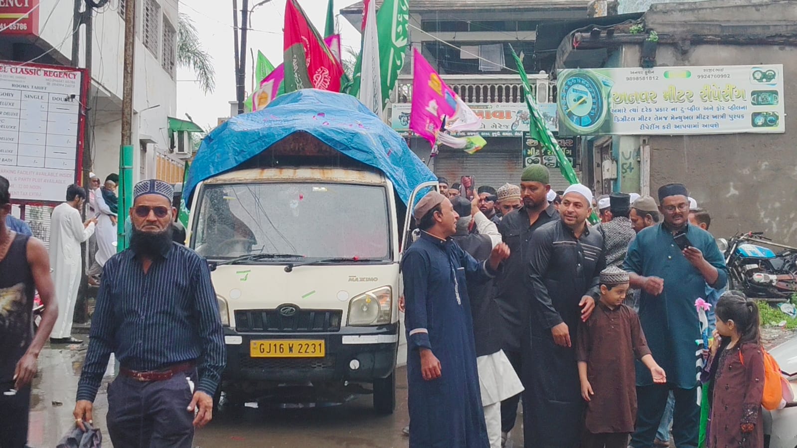 વરસાદ પણ ન રોકી શક્યો ઉત્સાહ, ભરૂચમાં ઇદે મિલાદની શાનદાર ઉજવણી, પોલીસનો ચુસ્ત બંદોબસ્ત. : આકાશમાંથી વરસી રહેલા વરસાદની પણ શ્રદ્ધાળુઓના ઉત્સાહ પર કોઈ અસર થઈ ન હોતી. નાના બાળકોથી માંડીને યુવાનો અને વડીલો સુધી સૌએ એકસાથે આ જુલુસમાં ભાગ લીધો હતો. રંગબેરંગી ઝંડાઓ, ધાર્મિક નારાઓ અને નાત શરીફના ખુશનુમા માહોલથી આખું વાતાવરણ ગુંજી ઉઠ્યું હતું. આ કાર્યક્રમ દરમિયાન કોઈ અનિચ્છનીય ઘટના ન બને તે માટે પોલીસ વિભાગ દ્વારા પણ ચુસ્ત બંદોબસ્ત ગોઠવવામાં આવ્યો હતો.