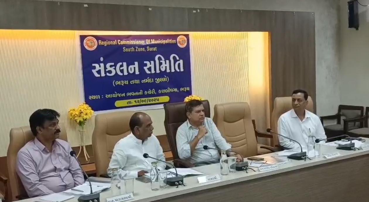 ભરૂચ નર્મદા જિલ્લાના નાગરિકોને વધુ સારી સુવિધાઓ ઉપલબ્ધ કરાવવા અને વિકાસના કામોમાં તેજી લાવવા માટે પાલિકાની સંકલન સમિતિની બેઠક આયોજન ભવન ખાતે યોજાઈ હતી. સુરત ઝોનના અધિકારી સંજયકુમાર વસાવા અને કેતન વાણાનીની અધ્યક્ષતામાં સંકલનની બેઠક મળી હતી.બેઠકમાં જિલ્લા તેમજ નગરપાલિકાના પધાકારીઓ અને અધિકારીઓ મોટી સંખ્યામાં હાજર રહ્યા હતા.આ બેઠકમાં ખાસ કરીને ભરૂચ જિલ્લાના સાંસદ મનસુખ વસાવા, ધારાસભ્ય રમેશ મિસ્ત્રી, નર્મદા-ભરૂચ જિલ્લાના નગરપાલિકા પ્રમુખો, ચીફ ઓફિસરો સહિતના જવાબદાર અધિકારીઓ ઉપસ્થિત રહ્યા હતા. બેઠકમાં વિવિધ મુદ્દે ચર્ચા કરવામાં આવી હતી.રોડ,રસ્તા, ગટરલાઈન અને શહેરી સુવિધાઓ જેવા મૂળભૂત વિષયો પર ધ્યાન કેન્દ્રિત કરી વિકાસના કામો વહેલી તકે હાથ ધરવા સંકલન સમિતિએ સૂચનાઓ આપી હતી.