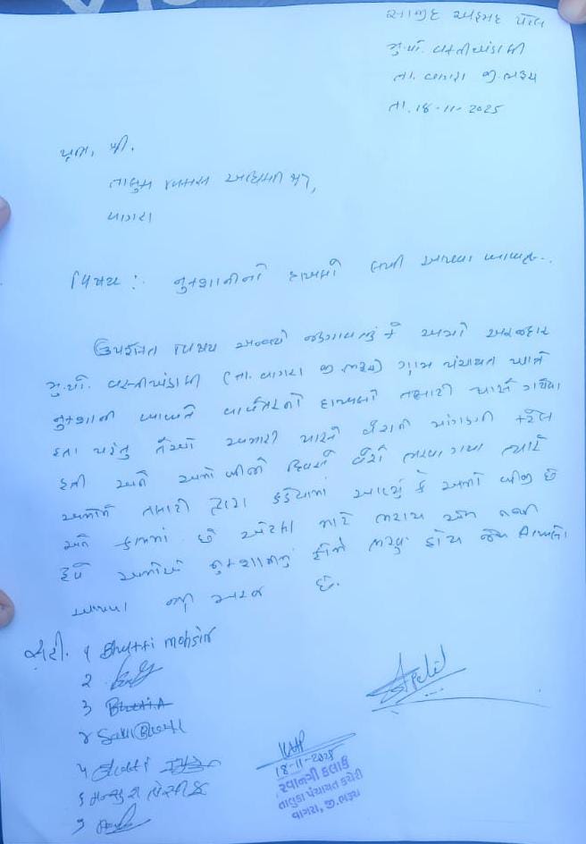 વાગરા તાલુકાના વસ્તી ખંડાલી ગામના અરજદારો અને ખેડૂતોએ ગામના તલાટીની ઘોર બેદરકારી અને મનમાનીથી ત્રાસીને આખરે વાગરા તાલુકા પંચાયત કચેરી ખાતે તાલુકા વિકાસ અધિકારી સમક્ષ લેખિત રજૂઆત કરી છે. ગ્રામજનોએ આક્ષેપ કર્યો છે કે, તલાટી સમયસર પંચાયતમાં હાજર રહેતા નથી અને સરકારી કામોમાં જાણી જોઈને વિલંબ કરીને હેરાનગતિ કરે છે. ગ્રામજનોએ TDO ને કરેલી લેખિત રજૂઆતમાં જણાવ્યું છે કે, તેઓ ખેતીમાં થયેલા નુકશાની અંગેનો દાખલો કઢાવવા માટે ગ્રામ પંચાયતમાં ગયા હતા. ત્યારે તલાટીએ દાખલો કાઢી આપવાને બદલે સૌપ્રથમ વેરાની માંગણી કરી હતી. જ્યારે ગ્રામજનો બીજા દિવસે વેરો ભરવા માટે તૈયાર થઈને ગયા તો તલાટીએ કહ્યું કે અમો આજે કામમાં છીએ, અત્યારે વેરો નહીં ભરાય. તલાટીના આવા બેજવાબદાર વર્તનને કારણે અરજદારોને અન્યાય થતાં આજરોજ ગ્રામજનોએ ભેગા મળીને નુકશાનીનું ફોર્મ ભરવા અંગેનો દાખલો લખી આપવા માટે સીધી TDO ને રજૂઆત કરી હતી.