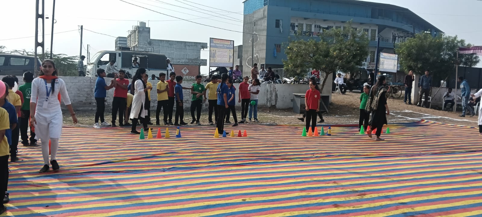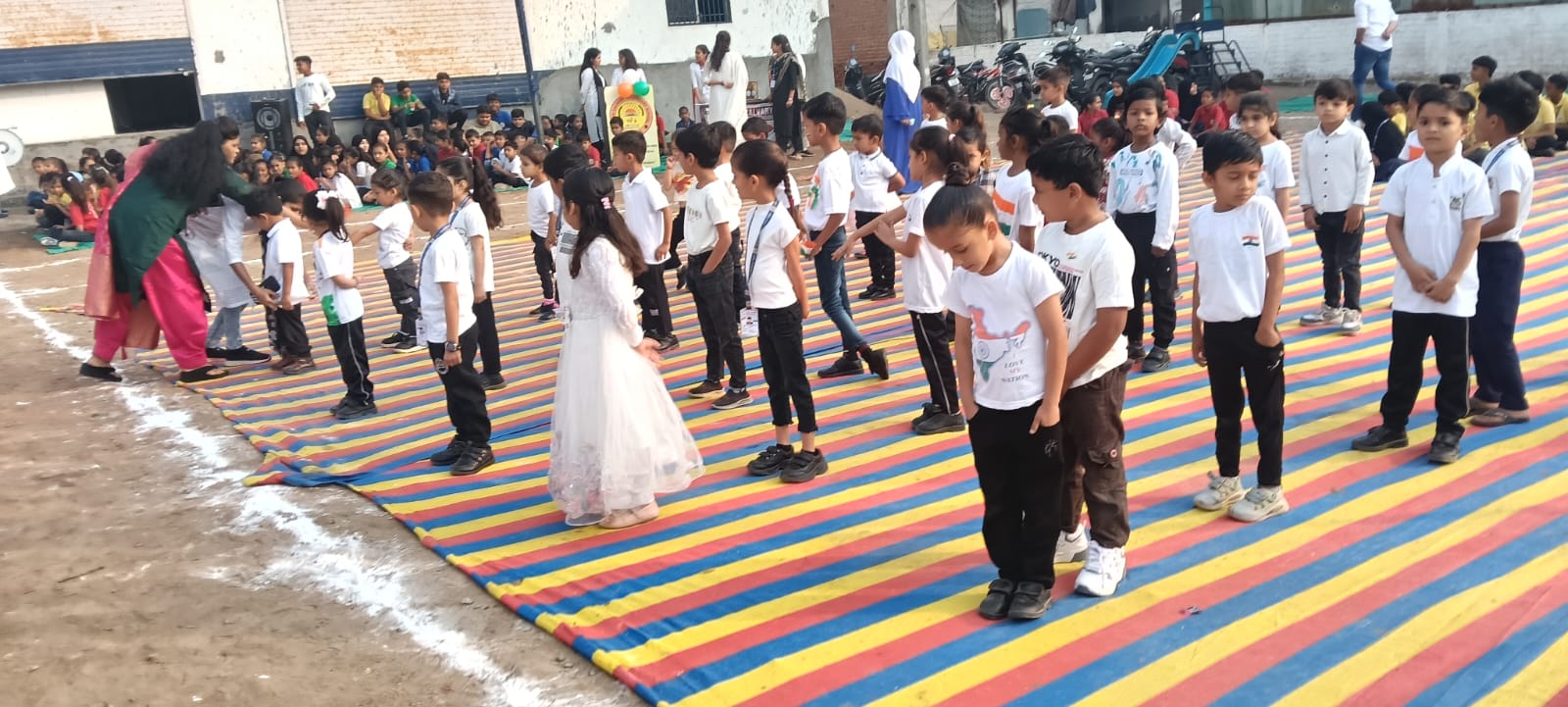કાર્યક્રમનું મુખ્ય આકર્ષણ પ્રી-પ્રાઈમરી અને પ્રાઈમરી વિભાગના નાના બાળકો દ્વારા રજૂ કરવામાં આવેલ માસ ડ્રિલ નૃત્ય રહ્યું હતું. સંગીતના તાલે અને રંગબેરંગી વેશભૂષામાં સજ્જ બાળકોના સુમેળભર્યા સ્ટેપ્સે વાલીઓ અને મહેમાનોની ખૂબ વાહવાહી મેળવી હતી. આ સમગ્ર ભવ્ય આયોજન ડૉ. હીના, ડૉ. ટી. એમ. ઓંકાર અને શ્રીમતી આશા ઓંકારના માર્ગદર્શન હેઠળ સફળતાપૂર્વક સંપન્ન થયું હતું. શાળા મેનેજમેન્ટે આ સફળતાનો શ્રેય શિક્ષકો, બિન-શિક્ષક સ્ટાફ અને ઉત્સાહી એન્કર ટીમને આપ્યો હતો. અંતમાં, શાળા પ્રશાસન દ્વારા તમામ વાલીઓનો આભાર વ્યક્ત કરવામાં આવ્યો હતો અને ઉપસ્થિતોનું મોઢું મીઠું કરાવી આનંદની વહેંચણી કરવામાં આવી હતી.