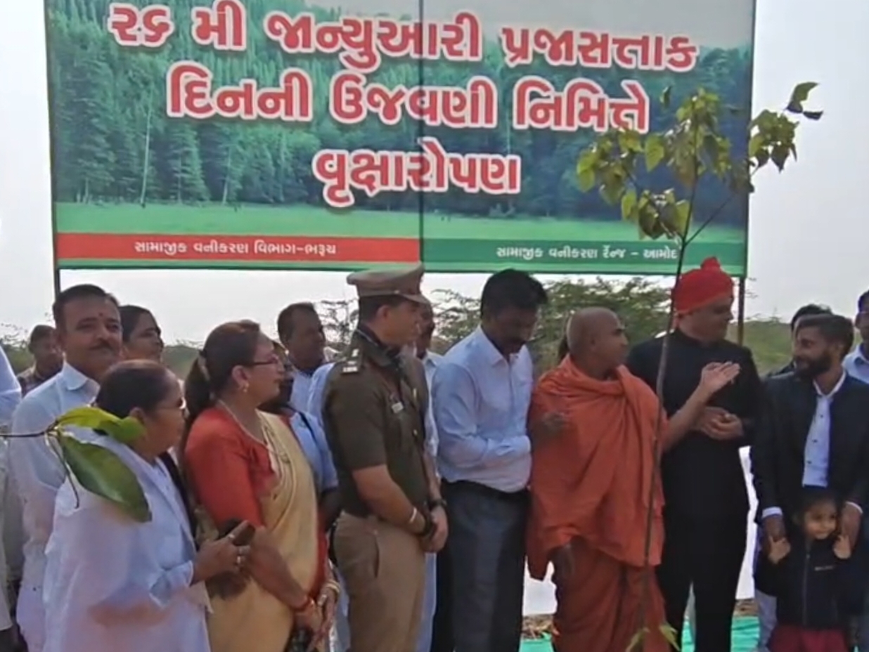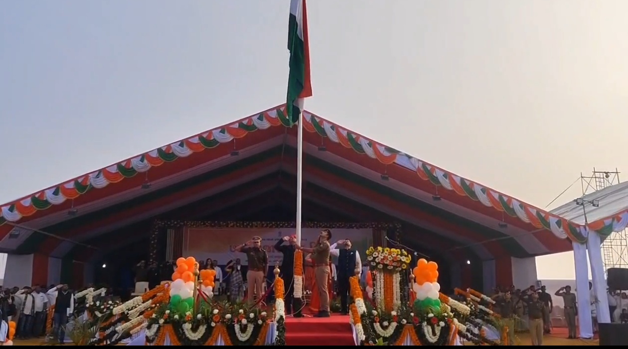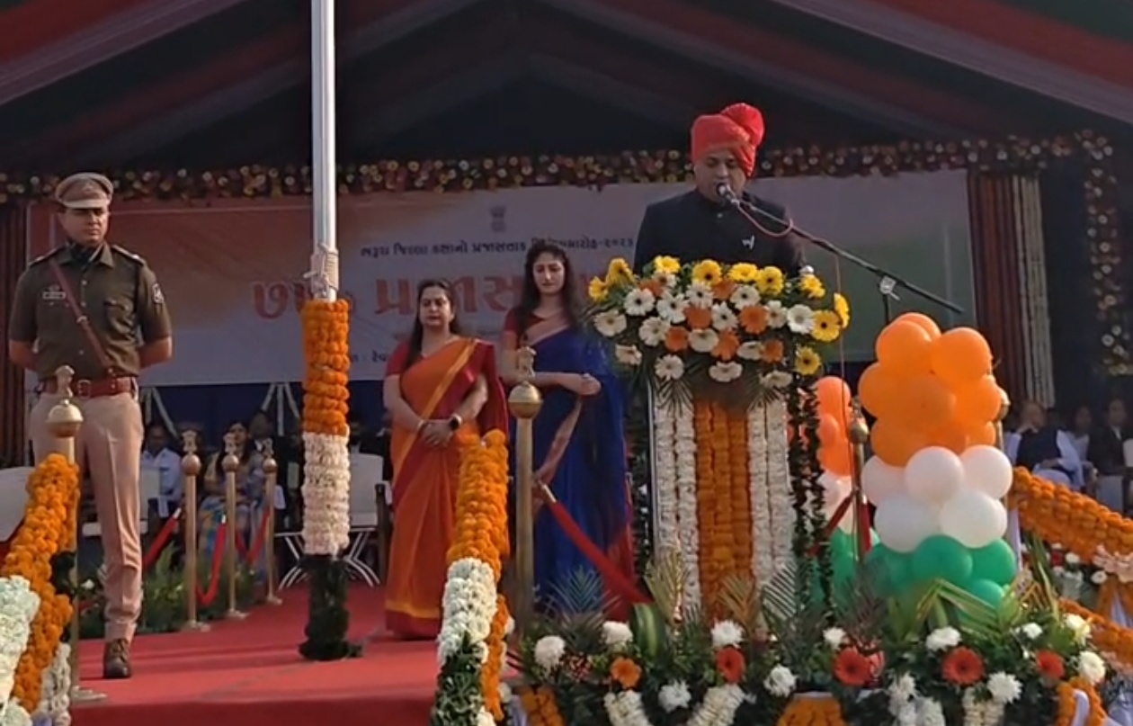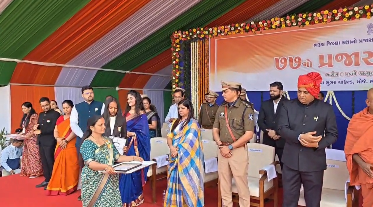 ભરૂચ જિલ્લા કક્ષાના ૭૭માં પ્રજાસત્તાક પર્વની ઉજવણી આ વર્ષે આમોદના રેવા શુગર ગ્રાઉન્ડ ખાતે અત્યંત હર્ષોલ્લાસ અને ગરિમાપૂર્ણ માહોલમાં કરવામાં આવી હતી. આ અવસરે ભરૂચ જિલ્લા કલેક્ટર શ્રી ગૌરાંગ મકવાણાએ નિર્ધારિત સમયે ધ્વજારોહણ કરી રાષ્ટ્રધ્વજને ગૌરવભેર સલામી આપી હતી.