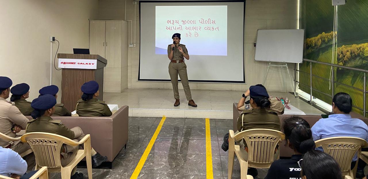 ડિજિટલ યુગમાં સાયબર સુરક્ષા: વર્તમાન સમયના અદ્રશ્ય પડકાર સમાન સાયબર ક્રાઈમ અંગે જાગૃતિ ફેલાવતા સાયબર ક્રાઈમ બ્રાન્ચના હેડ કોન્સ્ટેબલ મલ્કેશ ગોહિલે ખૂબ જ મહત્વપૂર્ણ જાણકારી શેર કરી હતી. તેમણે સોશિયલ મીડિયા પર પ્રાઈવસી જાળવવા, અજાણી લિંક પર ક્લિક ન કરવા અને ઓનલાઈન આર્થિક વ્યવહારોમાં થતી છેતરપિંડી (ફિશિંગ)થી બચવા માટેની ડિજિટલ સેફ્ટી ટિપ્સ આપી હતી. ટેકનોલોજીનો ઉપયોગ વરદાન બની રહે અને અભિશાપ ન બને તે માટેની તકેદારીઓ તેમણે સમજાવી હતી. આ જ્ઞાનસત્રમાં યોકોહામા કંપનીની મહિલા કર્મચારીઓએ માત્ર શ્રોતા બનીને રહેવાને બદલે સક્રિયપણે ભાગ લીધો હતો અને પોતાની મૂંઝવણો અંગે પ્રશ્નો પૂછી તેનું નિરાકરણ મેળવ્યું હતું. ભરૂચ પોલીસની આ પ્રો-એક્ટિવ કામગીરીને પગલે મહિલાઓમાં સુરક્ષાની ભાવના વધુ પ્રબળ બની છે અને આ પહેલને ચોમેરથી આવકાર મળી રહ્યો છે.