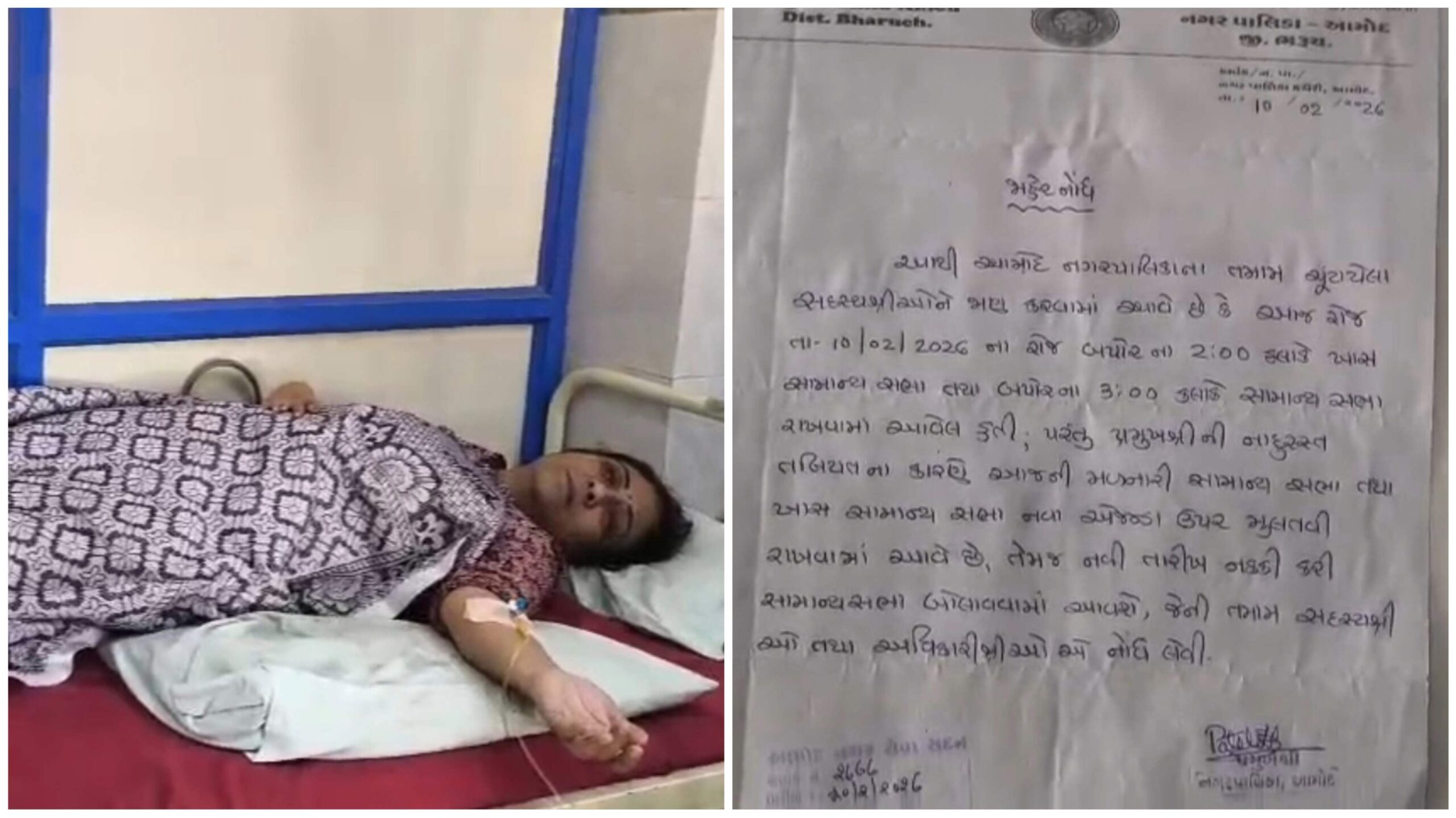 આમોદ નગરપાલિકામાં લાંબા સમયના વિરામ બાદ યોજાનારી સામાન્ય સભા ફરી એકવાર વિવાદના વમળમાં ફસાઈ છે. આશરે ૧૧ માસના લાંબા અંતરાલ બાદ ગતરોજ બપોરે ૨ કલાકે ખાસ સામાન્ય સભા અને ૩ કલાકે સામાન્ય સભાનું આયોજન કરવામાં આવ્યું હતું. જોકે, નિર્ધારિત સમય પહેલા જ પાલિકાના નોટિસ બોર્ડ પર પ્રમુખ જલ્પાબેન પટેલની તબિયત નાદુરસ્ત હોવાને કારણે સભા મુલત્વી રાખવામાં આવી હોવાની સૂચના લગાડી દેવામાં આવતા રાજકીય ગરમાવો વ્યાપી ગયો હતો. સભા મુલત્વી રહેતા વિપક્ષી સભ્યોએ ભારે રોષ વ્યક્ત કર્યો હતો. વિપક્ષના સભ્ય શકીલ કાપડિયાએ ગંભીર આક્ષેપ કરતા જણાવ્યું હતું કે, છેલ્લા એક વર્ષથી ત્રિમાસિક હિસાબો મંજૂર કર્યા વિના સત્તાધારી પક્ષ અને મુખ્ય અધિકારી દ્વારા મનસ્વી રીતે ખર્ચાઓ કરવામાં આવ્યા છે. આ આડેધડ ખર્ચાઓ પરની ચર્ચા અને સવાલોથી બચવા માટે જ પ્રમુખે માંદગીનું બહાનું ધરીને સભા ટાળી છે. સભાના એજન્ડામાં શહેરના વિકાસલક્ષી મહત્વના મુદ્દાઓ હોવા છતાં, સત્તાધારી પક્ષની આંતરિક નારાજગી અને વહીવટી નિષ્ફળતાને કારણે નગરના વિકાસ કાર્યો રૂંધાઈ રહ્યા છે.નોંધનીય છે કે, સભાના સમયે સત્તાધારી પક્ષના માત્ર એક સભ્ય બીજલ ભરવાડ હાજર રહ્યા હતા, જ્યારે બાકીના સભ્યોની ગેરહાજરી સૂચક માનવામાં આવી રહી છે. ચર્ચા મુજબ પ્રમુખના વહીવટથી શાસક પક્ષના સભ્યો પણ નારાજ હોવાથી તેઓ સભામાં ડોકાયા ન હોતા. તો બીજી તરફ પ્રમુખ જલ્પાબેન પટેલે ટેલિફોનિક વાતચીતમાં જણાવ્યું હતું કે, તેઓ આમોદ સરકારી હોસ્પિટલ ખાતે સારવાર હેઠળ હોવાથી અનિવાર્ય સંજોગોમાં સભા મુલત્વી રાખવી પડી છે. અને ટૂંક સમયમાં નવી તારીખ જાહેર કરવામાં આવશે. સોશિયલ મીડિયા પર ચીફ ઓફિસર જાણી જોઈને ગેરહાજર રહ્યા હોવાની વાતો વહેતી થતા, મુખ્ય અધિકારીએ આ મામલે સ્પષ્ટતા કરી છે. તેમણે જણાવ્યું હતું કે, ભરૂચની પોક્સો કોર્ટ દ્વારા સમન્સ પાઠવવામાં આવ્યું હોવાથી કાયદાકીય પ્રક્રિયાના ભાગરૂપે તેઓ કોર્ટમાં હાજર હતા. આમ, તેમની ગેરહાજરી કોઈ પૂર્વાયોજિત કાવતરું નહીં પણ અનિવાર્ય સરકારી ફરજ હતી.એક તરફ માંદગીનું કારણ અને બીજી તરફ ભ્રષ્ટાચારના આક્ષેપો વચ્ચે આમોદ નગરપાલિકાનો વહીવટ હાલ ચર્ચાનો વિષય બન્યો છે. હવે જોવાનું એ રહે છે કે નવી સભા ક્યારે યોજાય છે અને તેમાં હિસાબોને લઈને શું ખુલાસા થાય છે.