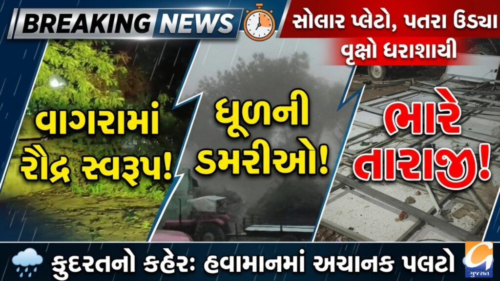 વાગરામાં કુદરતનો કહેર, મિનિ વાવાઝોડાએ સર્જી ભારે તારાજી, સોલાર પ્લેટો હવામાં ફંગોળાઈ અને વૃક્ષો ધરાશાયી
