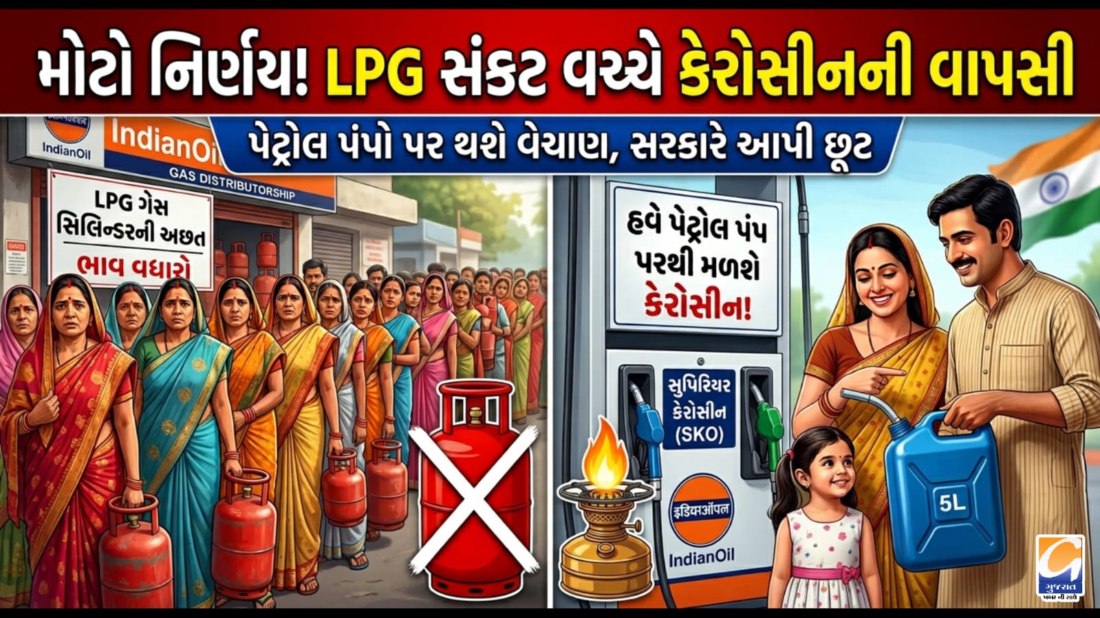 દેશમાં વધી રહેલા LPG સિલિન્ડરના ભાવ અને તેની અછતની સ્થિતિને જોતા કેન્દ્ર સરકાર દ્વારા એક મહત્વપૂર્ણ નિર્ણય લેવામાં આવ્યો છે. સામાન્ય જનતાને રાંધણ ગેસના વિકલ્પ તરીકે રાહત આપવા માટે હવે કેરોસીનની વાપસી થઈ રહી છે. સરકારના નવા આદેશ અનુસાર, હવે માત્ર રેશનિંગની દુકાનો જ નહીં પરંતુ પેટ્રોલ પંપો પરથી પણ કેરોસીનનું વેચાણ થઈ શકશે. આ માટે સરકારે પેટ્રોલિયમ સલામતી અને લાઇસન્સિંગના કડક નિયમોમાં અસ્થાયી રૂપે છૂટછાટ આપી છે, જેથી પુરવઠો વધુ સરળ અને ઝડપી બનાવી શકાય. પેટ્રોલિયમ અને કુદરતી ગેસ મંત્રાલયે આ દિશામાં મોટું કદમ ઉઠાવતા ગુજરાત, દિલ્હી, હરિયાણા અને ઉત્તર પ્રદેશ સહિત દેશના કુલ 21 રાજ્યો અને કેન્દ્રશાસિત પ્રદેશોમાં જાહેર વિતરણ વ્યવસ્થા (PDS) હેઠળ કેરોસીનના એડ-હોક આપી છે. આ વિશેષ વ્યવસ્થા આગામી 60 દિવસ માટે અમલમાં રહેશે.