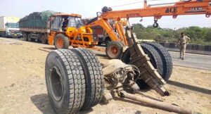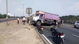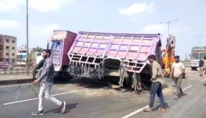 અંકલેશ્વર: નેશનલ હાઇવે પર ટ્રકના પાછળના ટાયરની કમાન તૂટી જતાં ટ્રકે પલ્ટી મારી