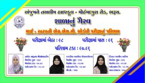 ધોરણ 12 HSC બોર્ડનું પરિણામ જાહેર થતાં ભરૂચની મહમદપુરા ખાતે આવેલ અંજુમન તાલીમ હાઇસ્કૂલની વિદ્યાર્થીઓએ ઉત્તમ પરિણામ મેળવી શાળાનું અને પરિવારનું ગૌરવ વધાર્યું છે. રાજ્યમાં ધોરણ 12નું પરિણામ જાહેર થયુ છે. ત્યારે વિદ્યાર્થીઓની મહેનતનું ખૂબ જ સારુ પરિણામ મળ્યું છે. રાજ્યમાં ફરી એકવાર દીકરીઓએ ડંકો વગાડ્યો છે. ભરૂચ શહેરના મહંમદપુરા વિસ્તારમાં આવેલ અંજુમને તાલીમ હાઇસ્કૂલની વિદ્યાર્થિનીઓએ નોંધપાત્ર પરિણામ મેળવ્યું છે. આ શાળાની કુલ 98 વિદ્યાર્થિનીઓએ પરીક્ષા આપી હતી જે પૈકીની 96 વિદ્યાર્થિનીઓ ઉતીર્ણ થઈ છે અને એટલા માટે જ શાળાનું 97.96 ટકા પરિણામ આવ્યું છે. આ શાળાની સાલેહ સાજીયાએ 94.43 ટકા, કાપડિયા આલિયાએ 93.29 ટકા જ્યારે દીવાન જાસ્મિને 92.29 ટકા ગુણ મેળવી ઉત્તમ પ્રદર્શન થકી શાળાનું તેમજ પરિવારનું ગૌરવ વધાર્યું છે.