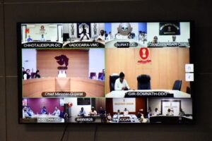 કલેક્ટર કચેરી ખાતેથી જિલ્લા વિકાસ અધિકારી પી.આર.જોષી અને લાઈઝનીંગ અધિકારીઓ વિડિયો કોન્ફરન્સથી જોડાયા