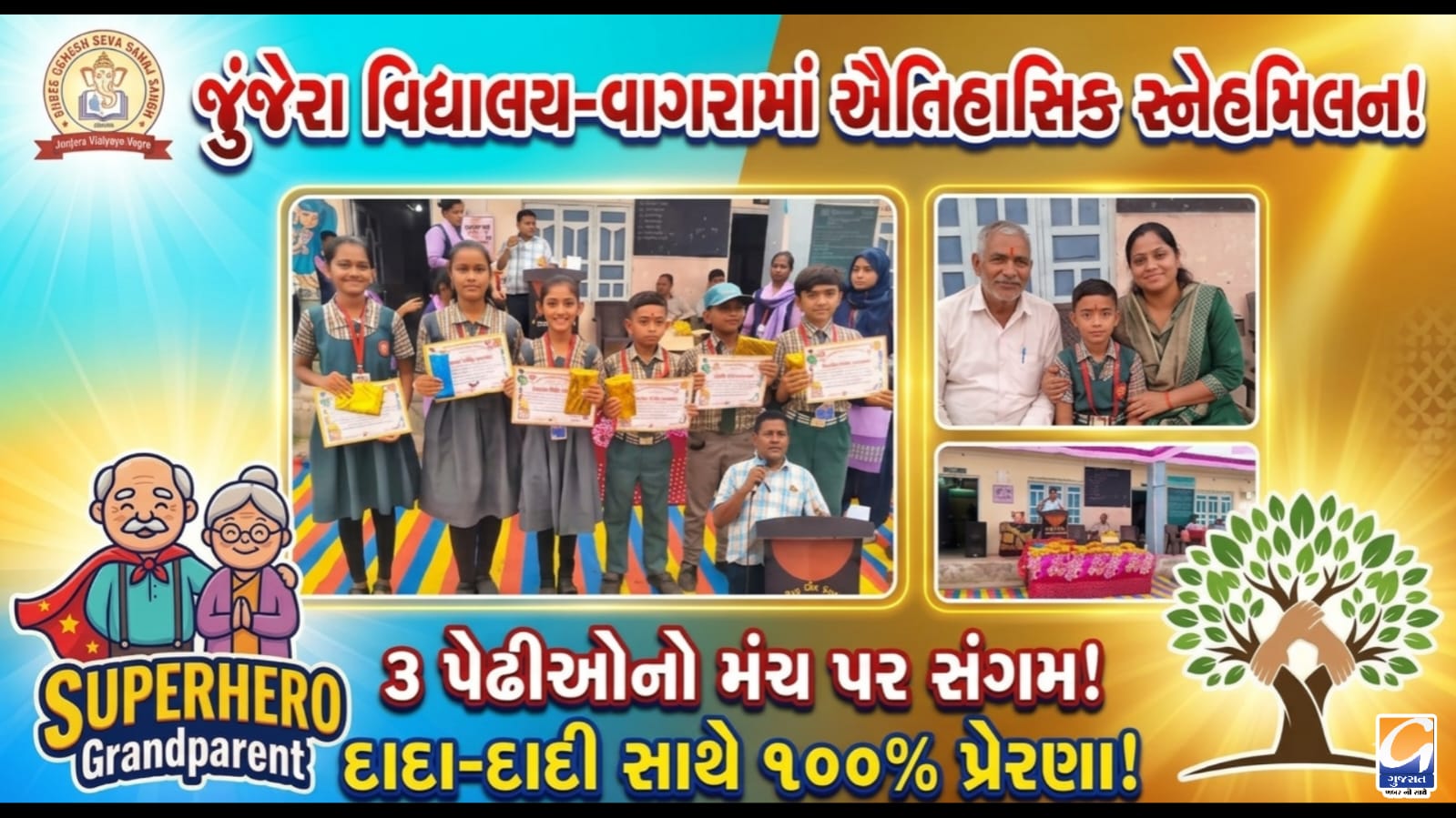 વાગરા: ત્રણ પેઢીનો ત્રિવેણી સંગમ, જુંજેરા વિદ્યાલય-વાગરા ખાતે દાદા-દાદી સ્નેહમિલન અને ઇનામ વિતરણ સમારોહ સંપન્ન થયો..