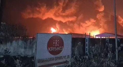 અંકલેશ્વર: પાનોલી GIDCમાં રવિવારની વહેલી સવારે કેમિકલ કંપનીમાં ભભૂકી ભીષણ આગ, મેજર કોલ જાહેર, આકાશમાં ધુમાડાના કાળા ગોટેગોટા છવાયા March 8, 2026
