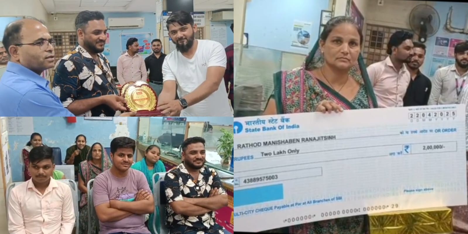 વાગરા: સ્ટેટ બેંક ઓફ ઇન્ડિયા શાખા દ્વારા વીમા ગ્રાહકને બે લાખ રૂપિયાનો ચેક અર્પણ કરવામાં આવ્યો May 23, 2025