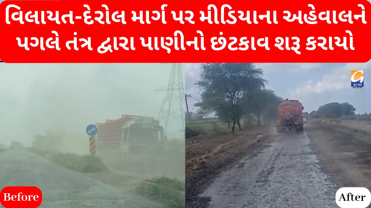 વાગરા: મીડિયામાં અહેવાલ બાદ તંત્ર સફાળું જાગ્યું, વિલાયત-દેરોલ માર્ગ પર તાત્કાલિક પાણીનો છંટકાવ September 25, 2025